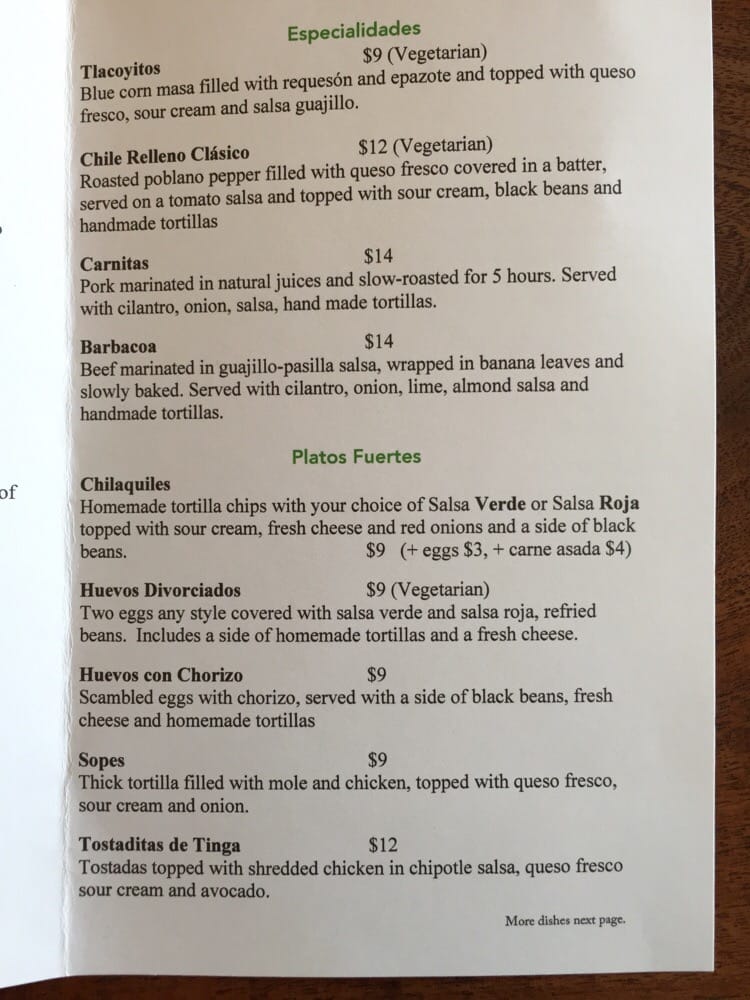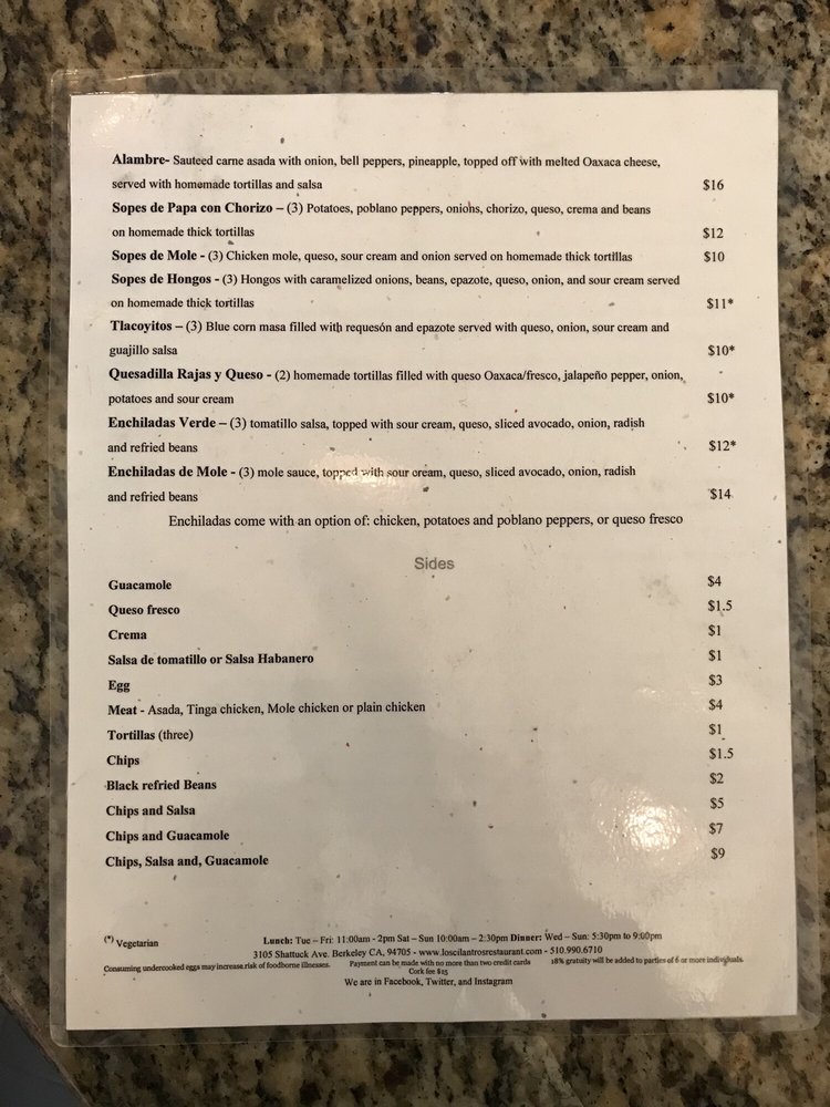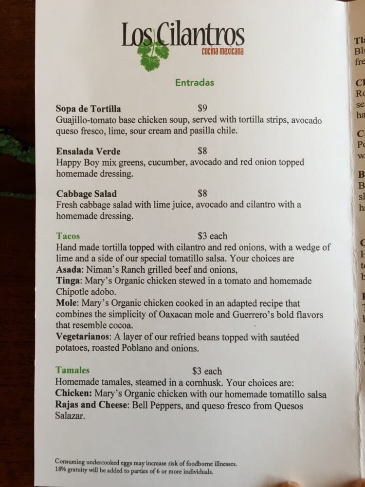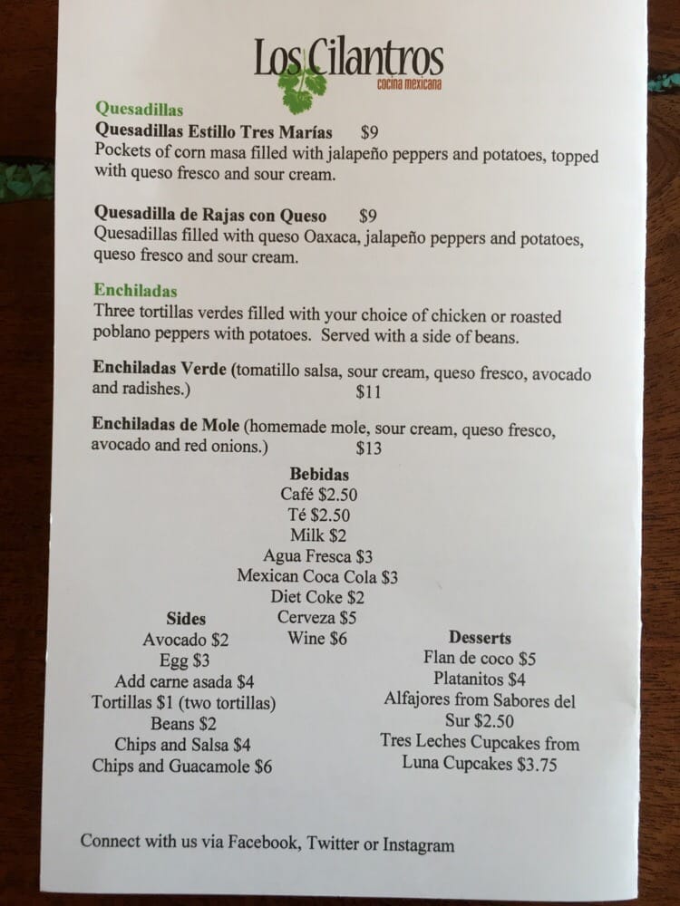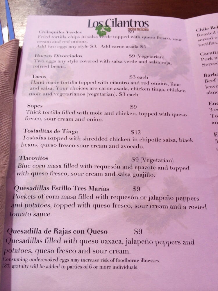 Los Cilantros Menu